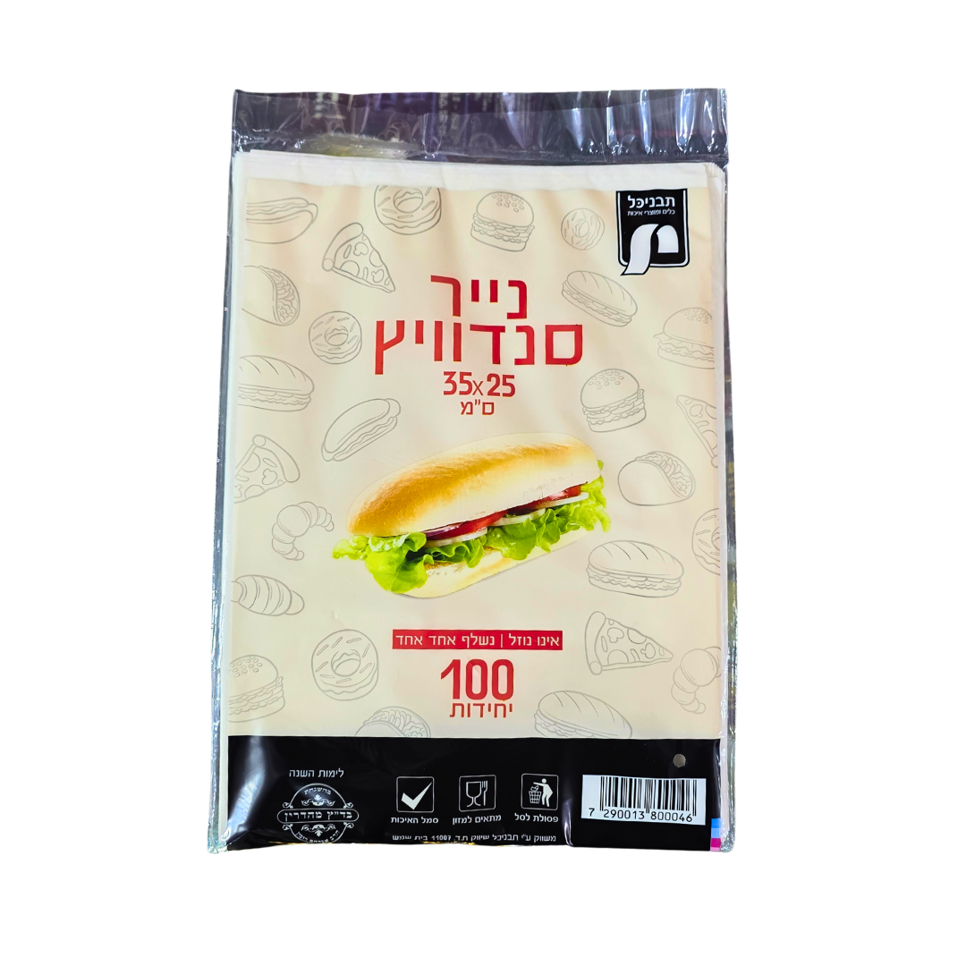 נייר עטיפה לסנדוויץ' 100 יחידות.
